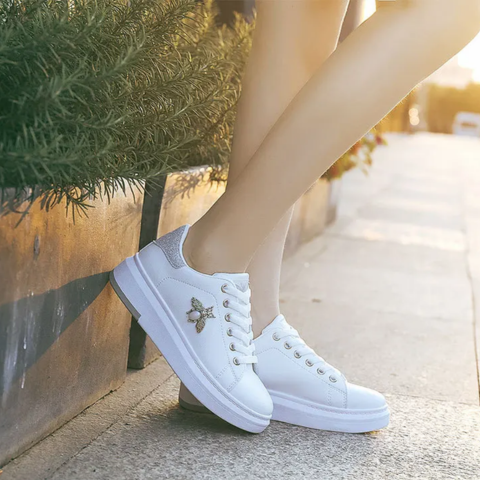 Avec une abeille délicatement brodée sur chaque paire, ces chaussures incarnent l'harmonie entre la nature et le style urbain. L'abeille, symbole de travail assidu et de beauté subtile, ajoute une touche unique à votre look, vous démarquant avec classe et sophistication.