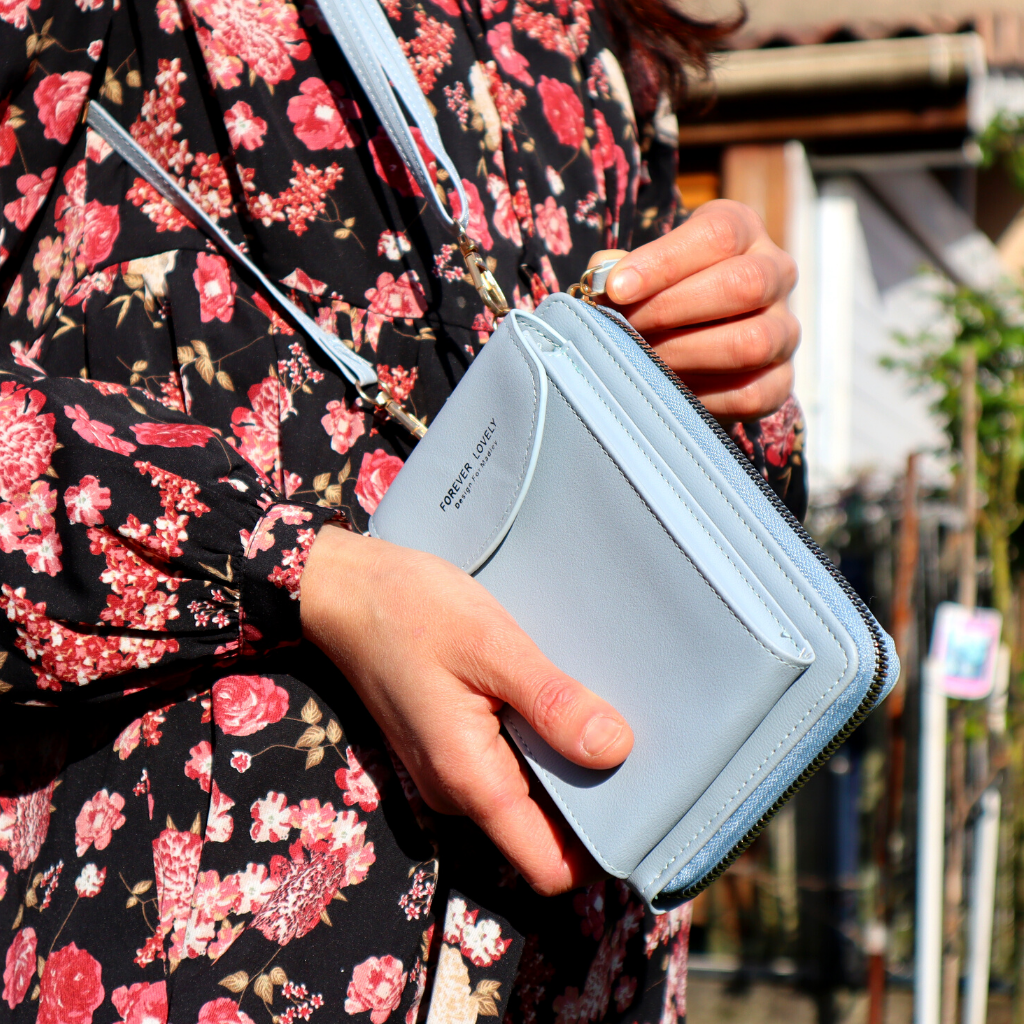 L'élégant portefeuille pochette CLARA™ est léger et élégant, conçu pour une vie en mouvement. Vous pouvez le porter à votre poignet ou utiliser la bandoulière incluse pour le transformer en un sac à main à bandoulière.