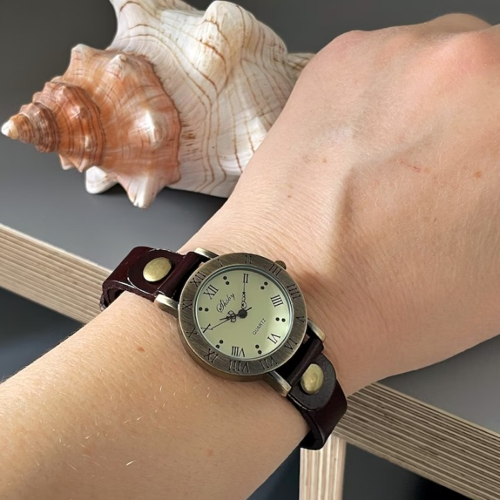 Lors de l'un de ses voyages, elle s'arrête dans un petit marché pittoresque et tombe sur un stand d'artisanat local. Elle y trouve cette montre charmante, vintage et dont on ne peut détourner le regard…