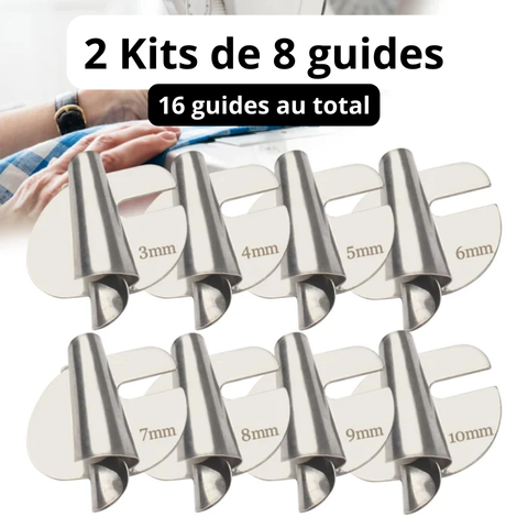Avec notre kit, chaque ourlet devient un jeu d'enfant. Plus besoin de passer des heures à ajuster et réajuster le tissu – nos guides dirigent le tissu de manière fluide et constante.