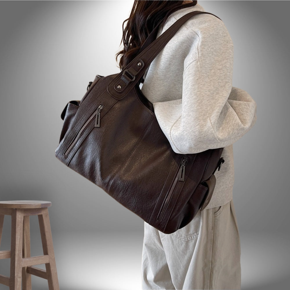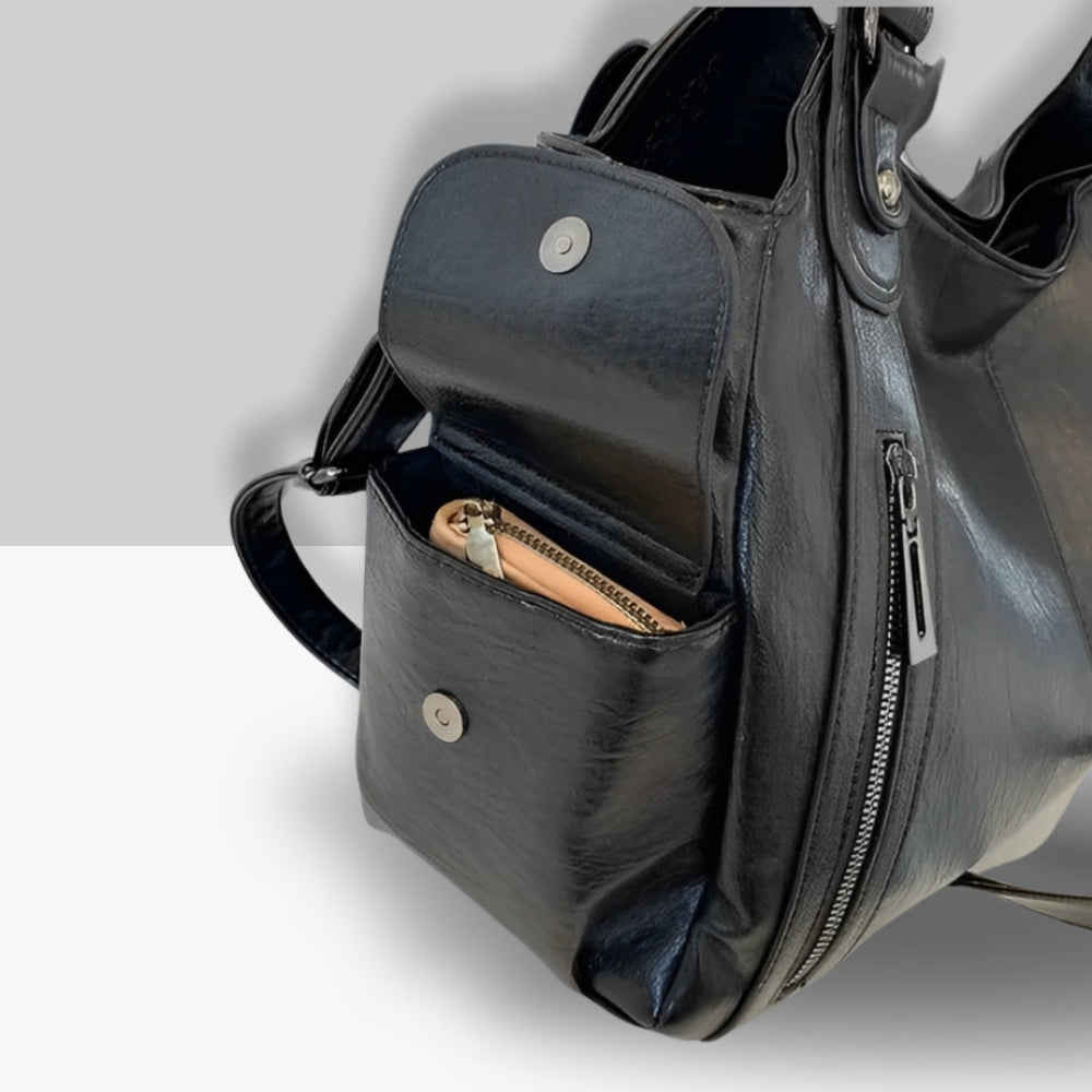 "Vera" est le sac parfait pour concilier style et fonctionnalité au quotidien. Confectionné à partir de matériaux végan haut de gamme, ce sac séduit par son design raffiné et sa capacité à répondre à vos besoins d'organisation. Grâce à ses deux compartiments spacieux et doublés, vous pouvez emporter vos essentiels tels que votre iPad, portefeuille, produits de beauté ou parapluie en toute simplicité. Avec ses poches latérales et internes, une bandoulière ajustable et des anses solides, "Vera" offre un confort optimal et une organisation impeccable. Que ce soit pour une journée de travail, un voyage ou une sortie décontractée, "Vera" sera toujours à vos côtés avec élégance.