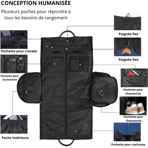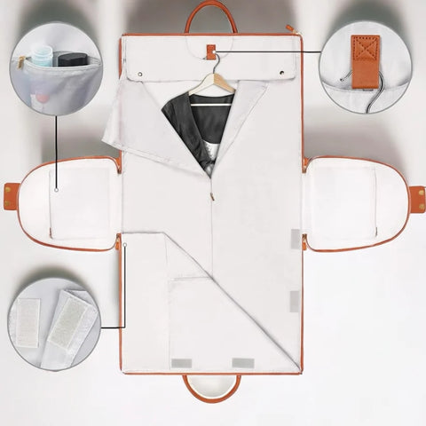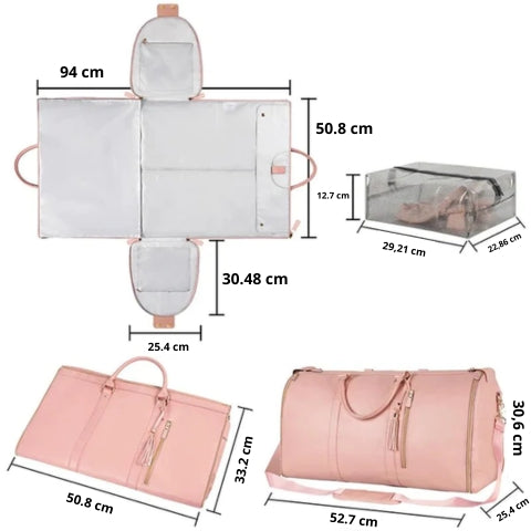 Unsere Tasche kann als tolle Reisetasche für besondere Anlässe wie Urlaub, Hochzeiten oder jeden Anlass verwendet werden, bei dem Sie Ihre besten Outfits mitnehmen können. In unserer Tasche gibt es mehrere Möglichkeiten , Ihre Kleidung an Ort und Stelle zu befestigen , bevor Sie sie für die Reise zusammenfalten.